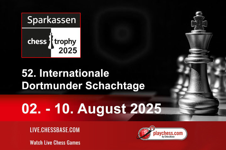 8/10/2025 – The 52nd edition of the Dortmund Chess Festival is taking place on 2-10 August at the Kulturzentrum in the largest city of the Ruhr District. European champion Matthias Bluebaum is the rating favourite in the A Open. On Sunday, the International Women's Tournament begins, featuring four representatives from three countries: Elisabeth Paehtz, Dinara Wagner, 15-year-old Chinese champion Lu Miaoyi and Deimanté Daulyté-Cornette of France. | Follow the action live starting at 15.00 CEST (9.00 ET, 18.30 IST)