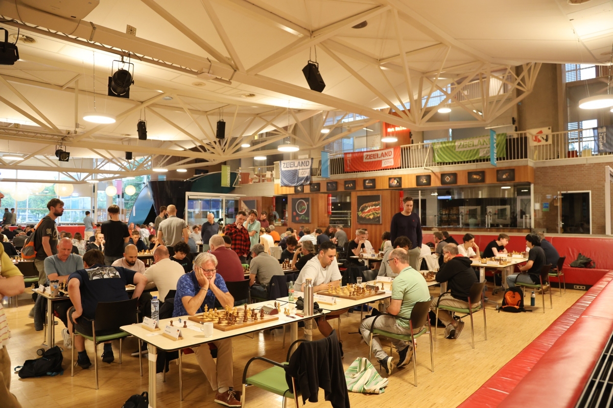 8/6/2025 – Seven players share the lead at the halfway mark of the traditional Zeeland University Open in Vlissingen, each with 4.5 points after five rounds. Among them are top seed Pavel Eljanov, as well as two Germans: Daniel Hausrath and Tim Ronge, the U16 champion of Rhineland-Palatinate. A mid-tournament report by Gerd Densing. | Photos: Gerd Densing