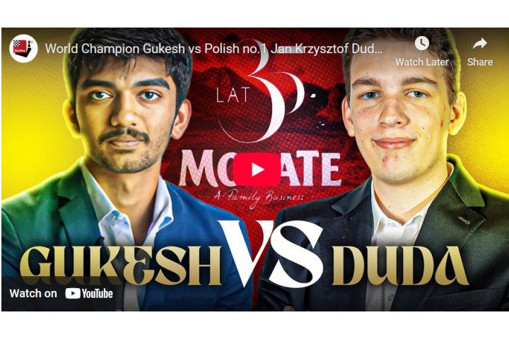 8/7/2025 – The trend is toward speeding things up, chess being no exception. Today in Katowice, Poland, World Champion Gukesh Dommaraju and Poland’s number one, Jan-Krzysztof Duda, face off in a six-game blitz match (3+2). If the score is tied after six games, an Armageddon game will decide the winner. ChessBase India will broadcast the short duel live, starting at 11:00 CEST.