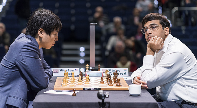Wesley So vs Vishy Anand, Round five of the London Chess Classic | Photo: Lennart Ootes