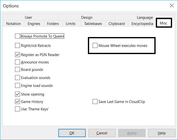 After ChessBase 14 was just released one of my friends mailed me saying that the mouse scroller which would earlier help him to play through the moves of the game was no longer working. Now he had to use the arrow keys. However, this is not true. Rather it's an options: