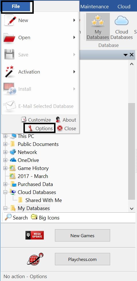 All you have to do is go to "File" and "Options" on the home screen of ChessBase 14