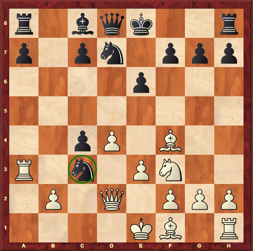 In the above position it is the knight on c3 which is circled. Hence, that's the best piece to move. Now, when you click on the knight on c3, this is what happens: