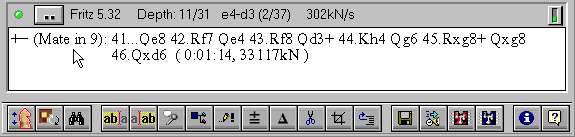 On a PentiumII-400 with 64 MB hash tables Fritz 5.32 finds a mate in nine – you have to deduct the initial black move when you announce it as a mate for White.