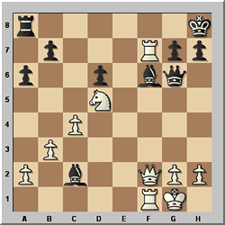 The game that caused the greatest suspicion was the one Allwermann played in the last round. It was an encounter that would decide the winner of the tournament, and the amateur player was facing the leading grandmaster. Completely undaunted, Allwermann proceeded to outplay his opponent in fine attacking style, reaching an easily winning position: