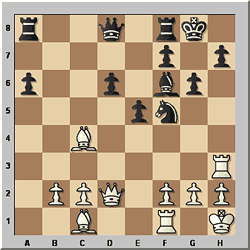 1.e4 c5 2.Nf3 d6 3.d4 cxd4 4.Nxd4 Nf6 5.Nc3 a6 6.Be2 e5 7.Nb3 Be7 8.0-0 0-0 9.Kh1 b5 10.a4 Bb7 11.Nd5 bxa4 12.Rxa4 Bc6 13.Ra3 Nxe4 14.Na5 Nf6 15.Nxc6 Nxc6 16.Bc4 Nd4 17.Rh3 g6 18.Qd2 Nf5 19.Nxf6+ Bxf6