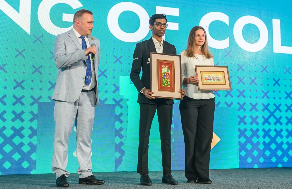 The ceremony’s key moment came with the drawing of lots for round one colours. Chief Arbiter Laurent Freyd took centre stage, calling forward the top-rated players from both sections: Praggnanandhaa R (Open section) and Anna Muzychuk (Women’s section).