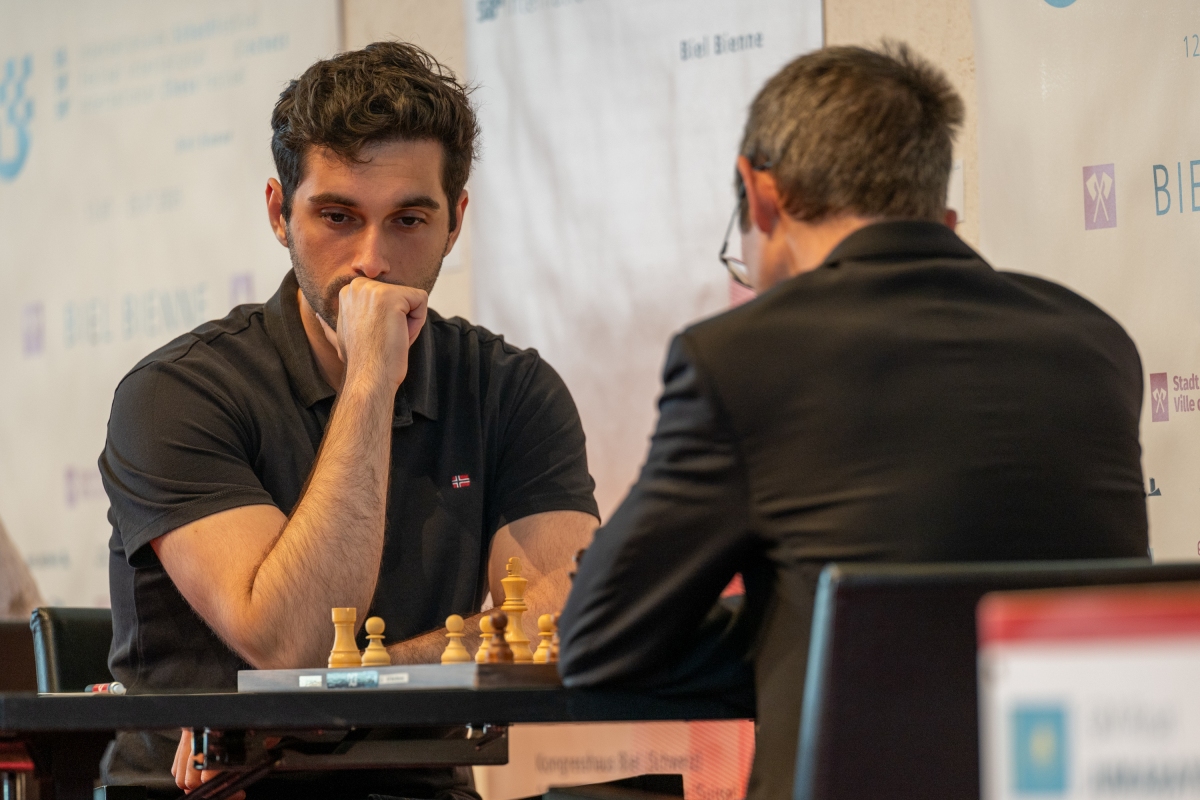 After the first game of the final phase, the leading trio in the Biel GMT-Masters remains close together: Saleh Salem and Vladimir Fedoseev are still tied on points, followed by Aravindh Chithambaram on one and a half points.