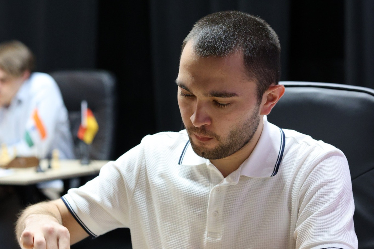 9/1/2025 – Pranav Venkatesh kept the sole lead at the Fujairah Global Chess Championship after drawing with Abhimanyu Mishra in round eight, reaching 6 points. Two players closed in on the leader, as Brandon Jacobson defeated Aydin Suleymanli and Amin Tabatabaei (pictured) outplayed Andrew Hong, both moving to 5½ points. In the final round, Pranav will face Alan Pichot, while Jacobson and Tabatabaei meet Nihal Sarin and Alexander Donchenko respectively, all with tournament victory still in sight. | Photo: Anna Shtourman