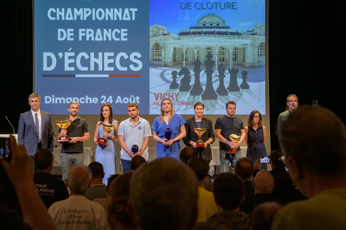 8/26/2025 – The French Chess Championships concluded in Vichy, with Marc'Andria Maurizzi and Yosha Iglesias crowned as the new national champions. Maurizzi defeated Laurent Fressinet in rapid tiebreaks, while Etienne Bacrot claimed third place ahead of Sebastien Maze. In the women's final, Iglesias overcame Mitra Hejazipour, with Anastasia Savina securing bronze after a tiebreak win against Deimante Daulyte-Cornette. The event closed a ten-day festival featuring players of all levels. | Photos: Nathalie Daubry / French Chess Federation
