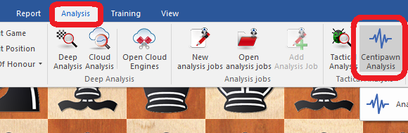 Now go to the Analysis tab and click on Centipawn Analysis. Although it will give a full report in each and every game, it will do more than that.