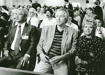Tim Rice and lead singer Elaine Paige attended the World Championship match between Garry Kasparov and Anatoly Karpov in 1986. The photo of them in the audience, sitting next to FIDE President Florencio Campomanes, was provided by Lars Grahn.