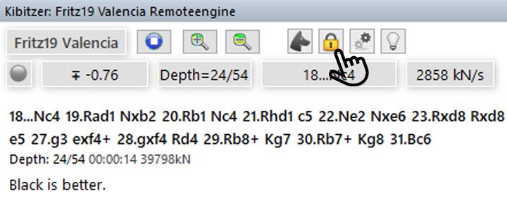 - Click on the lock to close it and you can make moves on the board while the engine continues to calculate the position in which you closed the lock.