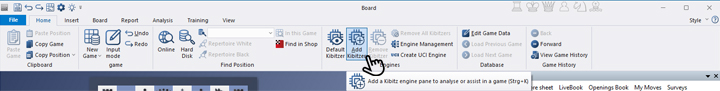 "Add Kibitzer" allows you to select an engine from the engines installed on the computer: