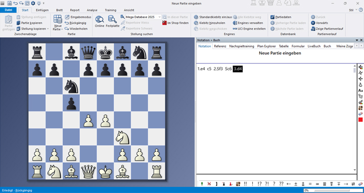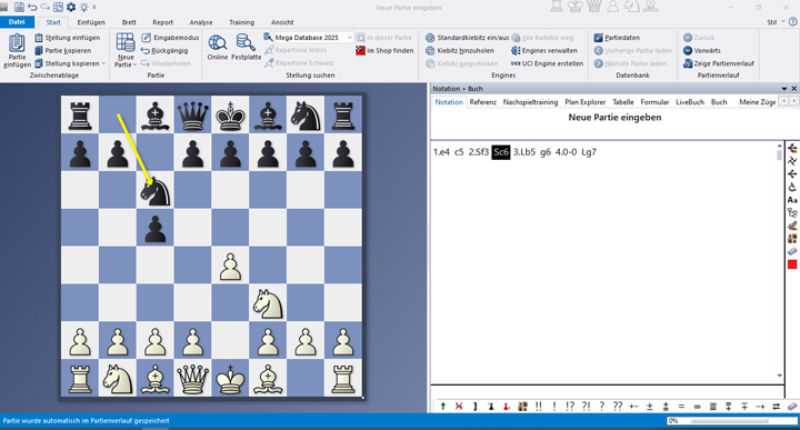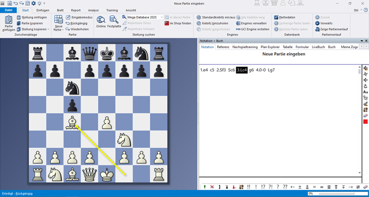 Now you can analyse anywhere in the notation, whether main line or side line. In the next episodes, we will take a closer look at the analysis options with the engine, also with the help of references and the opening book.