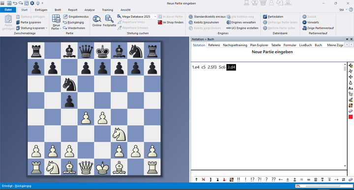 We have already explained step by step in the first part of this series how easy it is to enter your own games with ChessBase. There we showed the first moves of a game and reached this position:
