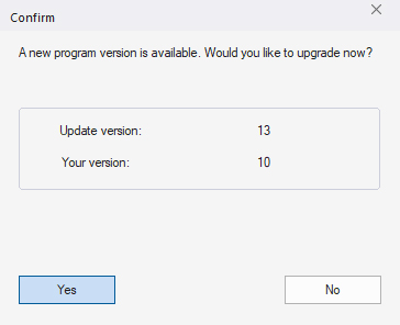 The window shows that the current available update is version 13, while your computer is currently running version 10. Click "Yes" to start the update process. You’ll then see the following status message:
