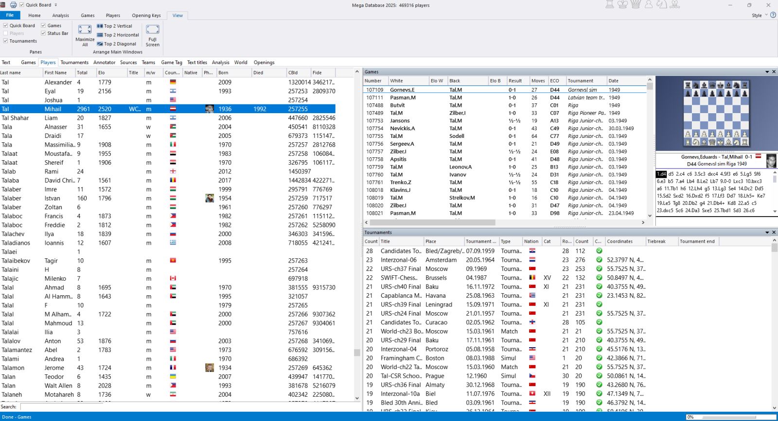 In this example, we’ll demonstrate using the games of Mikhail Tal in the current MegaDatabase.