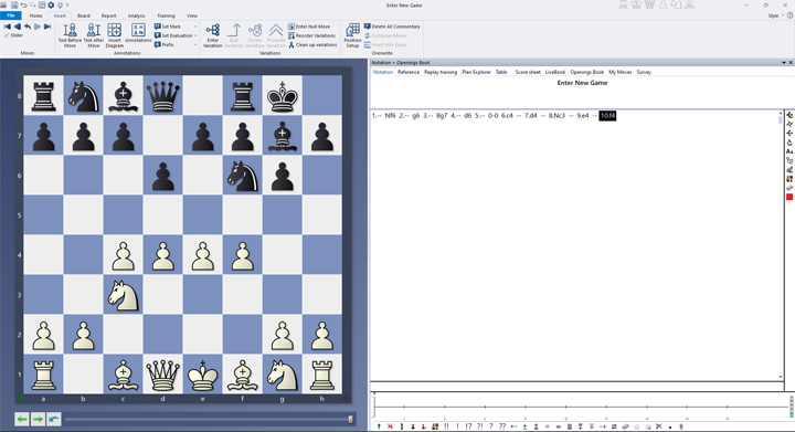 For example, if you want to demonstrate Black’s typical setup in the King’s Indian Defence during your next training session, you don’t have to build the position from scratch. Starting from the initial position, you can quickly reach the setup shown here as follows: