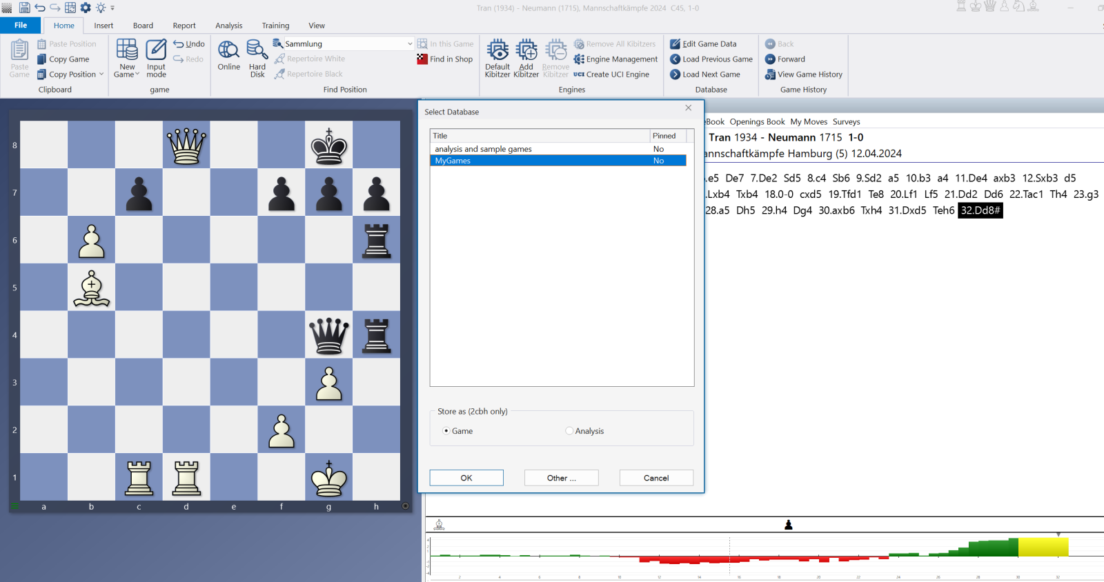 You can now, for example, copy game 7 in the ‘MyGames’ list and insert it into the ‘Analyses and illustrative games’ database: