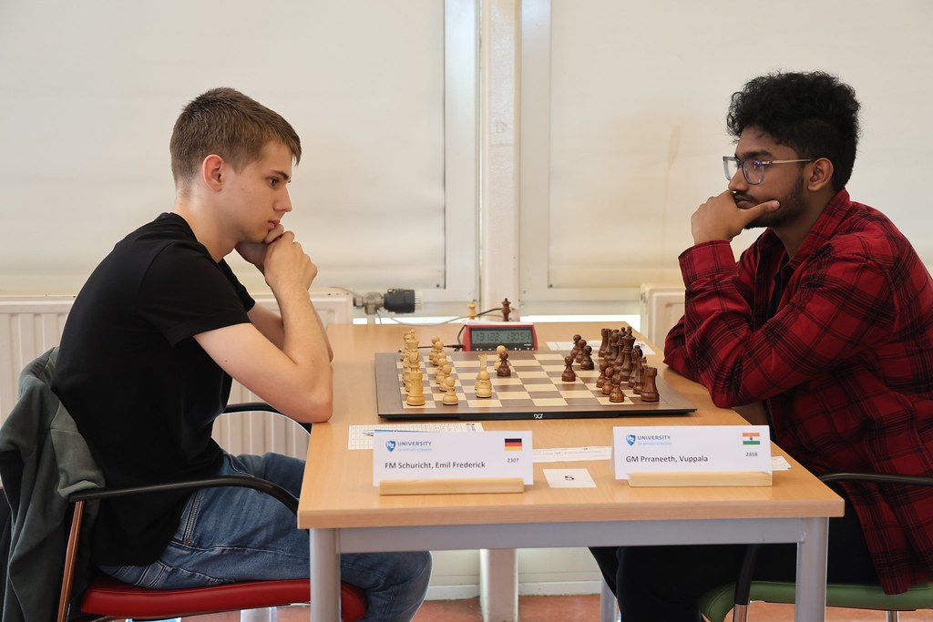 From a German perspective, it was both interesting and pleasing to see the very young and friendly FM Emil Frederick Schuricht score a victory over the young Indian grandmaster Vuppala Prraneeth on board 5.