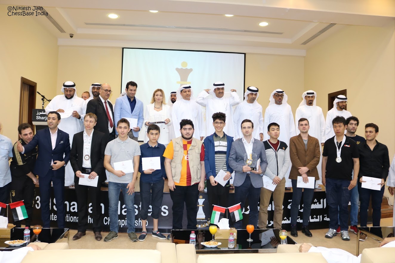 GM Ernesto Inarkiev won the Sharjah Masters 2019 with 7.0/9 and a performance of 2790. It was a seven-way tie at the top, but Inarkiev edged out everyone else with a superior tiebreak (Buchholz), and the prize money was not shared.