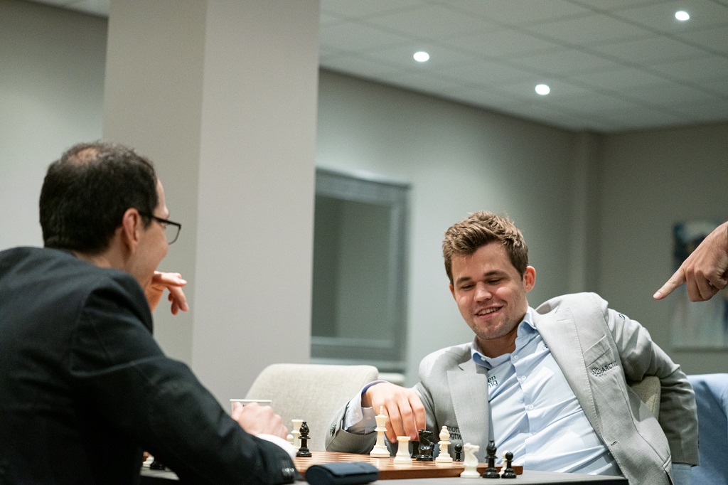 Four other players from the top ten are on 2 out of 3, like Carlsen, and three of them got wins on Saturday: Levon Aronian played a remarkable game with Black to beat Andrey Esipenko, Pentala Harikrishna outplayed Erwin l'Ami in a long rook endgame, and Sergey Karjakin got lucky against Rinat Jumabayev — the Kazakh grandmaster rejected a triple repetition while in a superior position, but blundered afterwards and did not even get a half point.