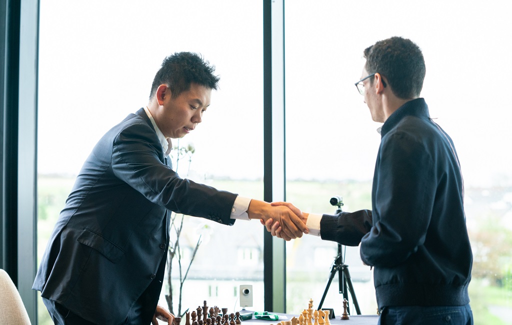 The story of the day did not develop on board one — where Fabiano Caruana was pressing but in the end could not keep his perfect score against Wang Hao — but six boards 'below', where Vladislav Kovalev came within an inch of bringing Magnus Carlsen's undefeated streak to a halt after 438 days of not losing a single classical game.