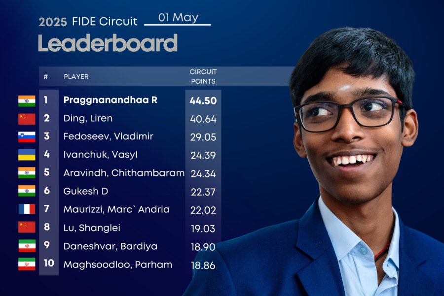 The FIDE Circuit continues to shape the qualification path for the Candidates Tournament 2026, with players competing across the strongest international events of the year. Performances are measured through a points system that accounts for both results and the strength of each event. At the end of the season, the sum of a player's seven best results determines their final score, and the eventual winner secures a direct spot in the Candidates.