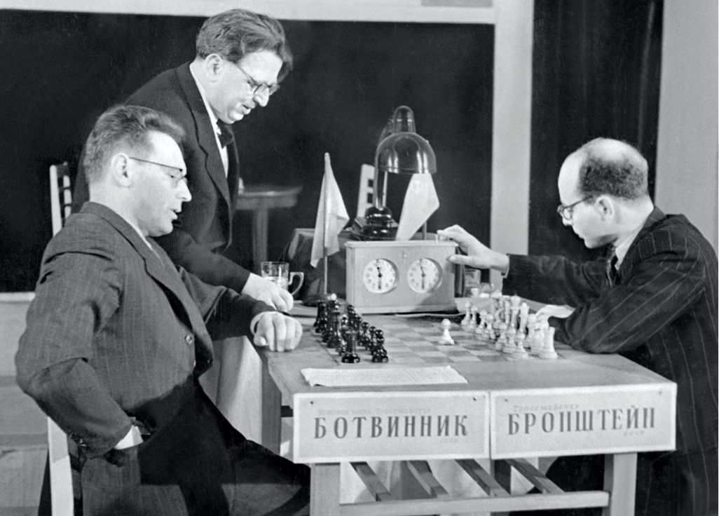 In 1950 the first Candidates Tournament was organized in Budapest with ten participants qualifying, including seven Soviet players. David Bronstein and Isaac Bolevslavsky finished equal first, and as per regulations, they went on to play a match in Moscow to decide the cycle’s winner. By the small margin of one little point, David Bronstein got his ticket to challenge Mikhail Botvinnik for the world title.