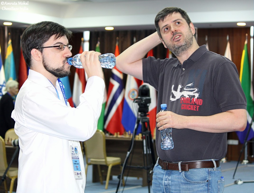 MVL's second Etienne Bacrot after winning the match, "MVL will have his first rest day after nine days, but I will be working!"