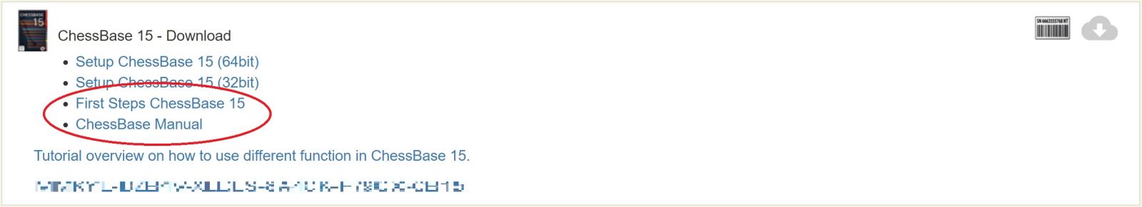 If you’re installing from digital download, then your code will be available via your online ChessBase shop account, just below where you downloaded the ChessBase15 installation file.]