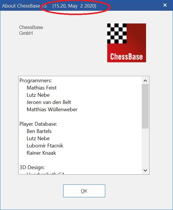 The important thing for our purposes, is the number and date in the brackets at the top. This gives the update version number (in this case “ChessBase 15, update 20) and it was released on May 2 2020. This is the latest update at the time of writing, but obviously, more may appear in the future, so your information may differ.