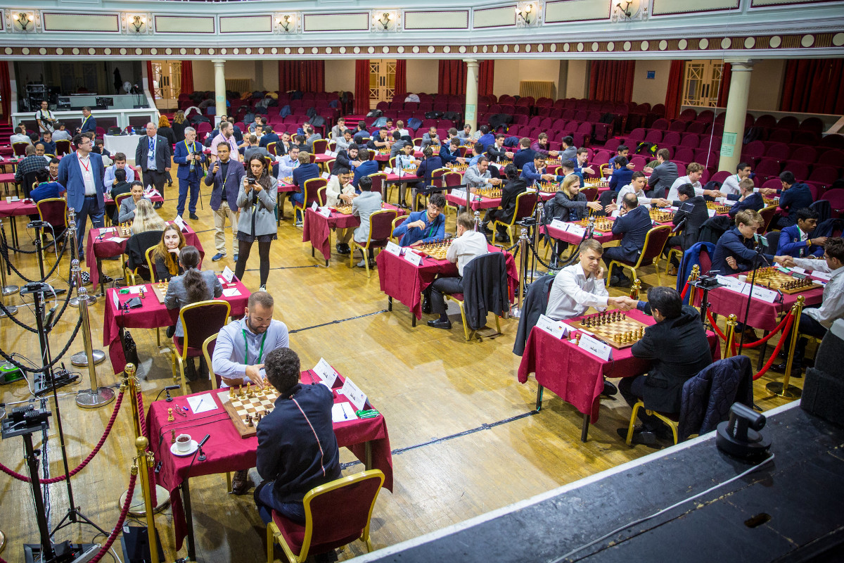 The Grand Swiss returned to the Isle of Man in October 2023, with the open and women's events played side by side. The venue was again the Royal Hall of the Villa Marina in Douglas. The open section had 114 participants, while the women's field featured 50 players.