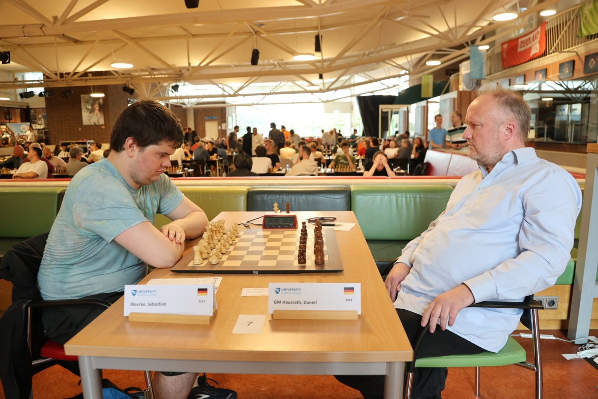 Five rounds have now been played—essentially the halfway point. The first two rounds at the top DGT boards saw no major surprises. In round 3, GM Daniel Hausrath dropped his first half-point with a draw against Sebastian Bleeke.