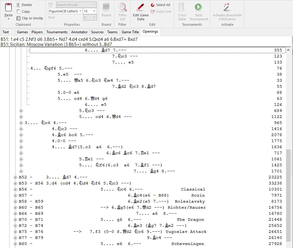 Use the opening classification to see the different theoretical lines that have been played in this opening, in a hierarchical tree according to the ECO (Encyclopedia of Chess Openings) code.