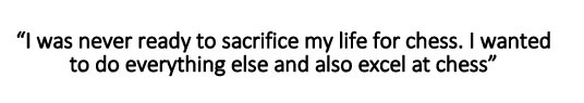 IS: (After some thought) Maybe discipline. I was never ready to sacrifice my life for chess. I wanted to do everything else and also excel at chess.