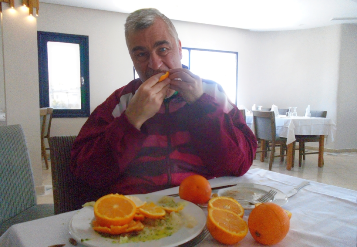 "No," he replied. "I just like them." On Djerba, he had access to especially sun-kissed, juicy oranges!