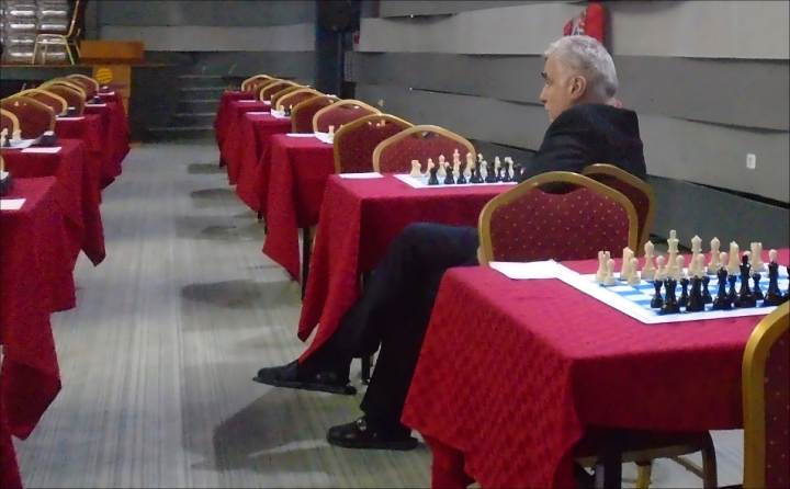 This was his routine for the rest of the tournament: he would sit alone at a table in the open section, contemplating until the playing hall filled with players and it was time to take his seat at the board on the stage.