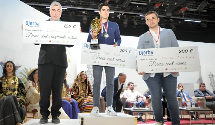 Ivanchuk's participation in the festival remained uncertain until just a couple of days before the event. His country was at war, and regulations required his departure to be approved by the Ministry of Foreign Affairs. In times of war, it is difficult to make sense of the procedures. Despite delays and complications, Ivanchuk eventually made it to the island of Djerba. Chess is in his blood, and even though he is considered a veteran, he is still young enough to travel the world and challenge much younger opponents with enthusiasm. At the Prize Giving Ceremony, it was noted that the combined age of the top three finishers matched his own age at the time, 54. (A month later, on March 18, Ivanchuk turned 55.)