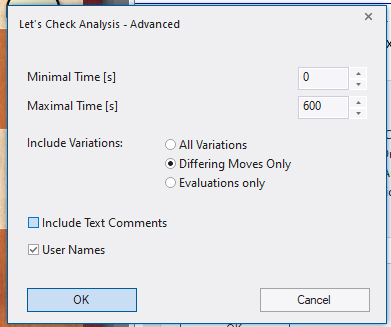 Now we have a number of options to play around with. The key to understand here is this: now when you are accessing the Let's Check moves, you will also be using your engine to contribute further analyses. For example, if you select Differing Moves Only, then every time a move in the game was not chosen by other engines, it will analyze with your engine and add the results to the database. This will happen even if the result is in agreement with the other engines.