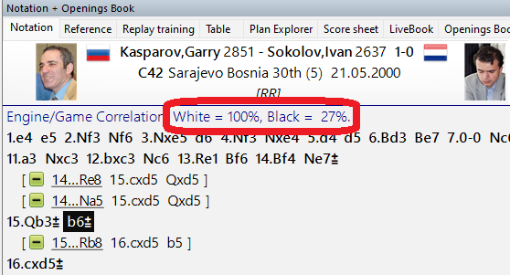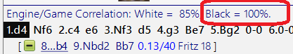 However, unlike a plain engine comparison, it won't compare with just one top engine move, it will compare with several, and if the move matches any of those engines, then it is a match for Engine Correlation.