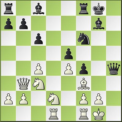 The critical moment of the game. White has a very solid position and hopes to exploit Black's aggressive expansion on the kingside. However, in the present game Polgar shows Black's attacking potential in a very convincing way. One the of main problems for White are the lack of nice squares for the knights and in order to activate these pieces White should opt for 15.g4! fxg4 16.Nd2 (16.Nh2 has been played in a few earlier, games, but on d2 it's more active) 16...Nf6 17.Nde4 Qe7 18.c5! offers White tremendous play on the light-squares, while the d6–square is a great outpost for either the knight or rook (to double on the d-file). In the game Ruban first brings the knight to d2, preparing g3–g4 with the idea of controlling the e4–square, but Polgar has a creative solution thwarting White's plan.