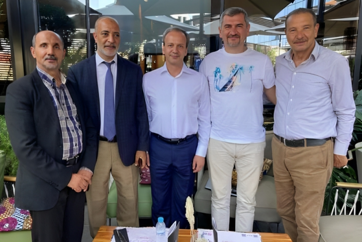 Amazzal, Dvorkovich and Bologan accompanied by Amazzal's friends and former ministerial colleagues, Lahcen Taghda (far left) and Abdelmoula Lemsioui (far right) at the Francophone Chess Association's (AIDEF) meeting in Casablanca, July 2022 | Photo: AIDEF