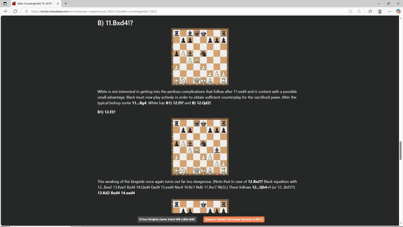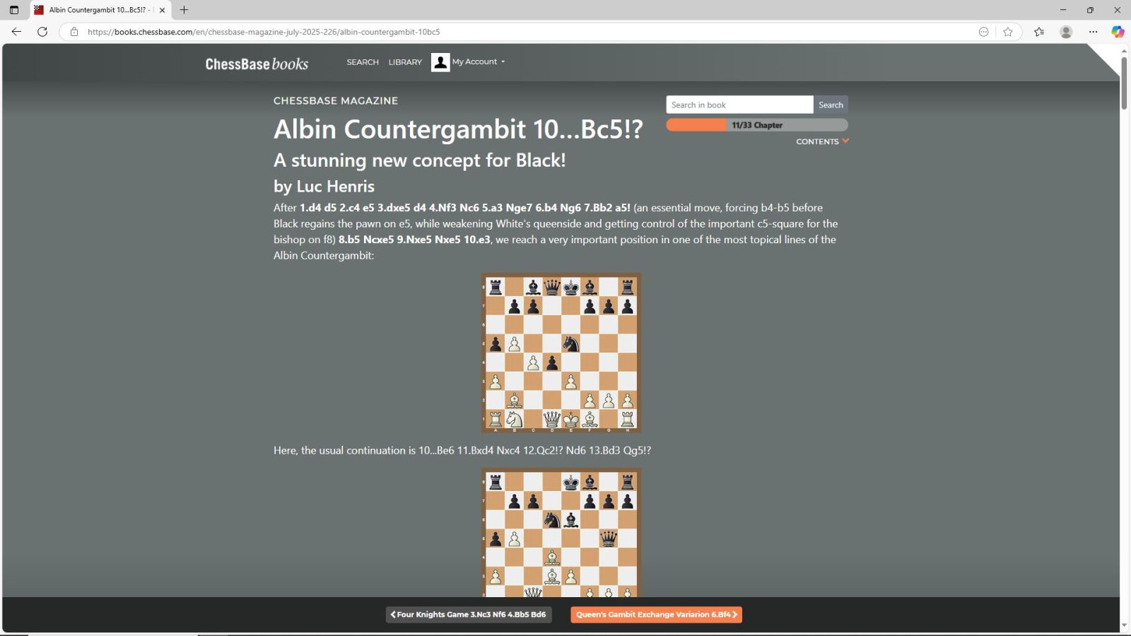 Henris: “10...Bc5!? leads to fantastic positions which I really enjoyed analysing. In basically all variations Black seems to be more or less fine, with lots of tactics working in their favour. It once again shows the amazing resources of the Albin Countergambit, and I hope this article inspires you to employ this opening in your own practice!”