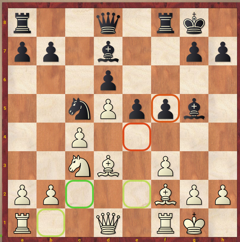 Red is because I lose a piece, orange I still lose it but gain a bit of material, light green on e2 is ok but not best, and Bc2 is a strong choice if that is what I want to do (I played 16. b4 here for the record).