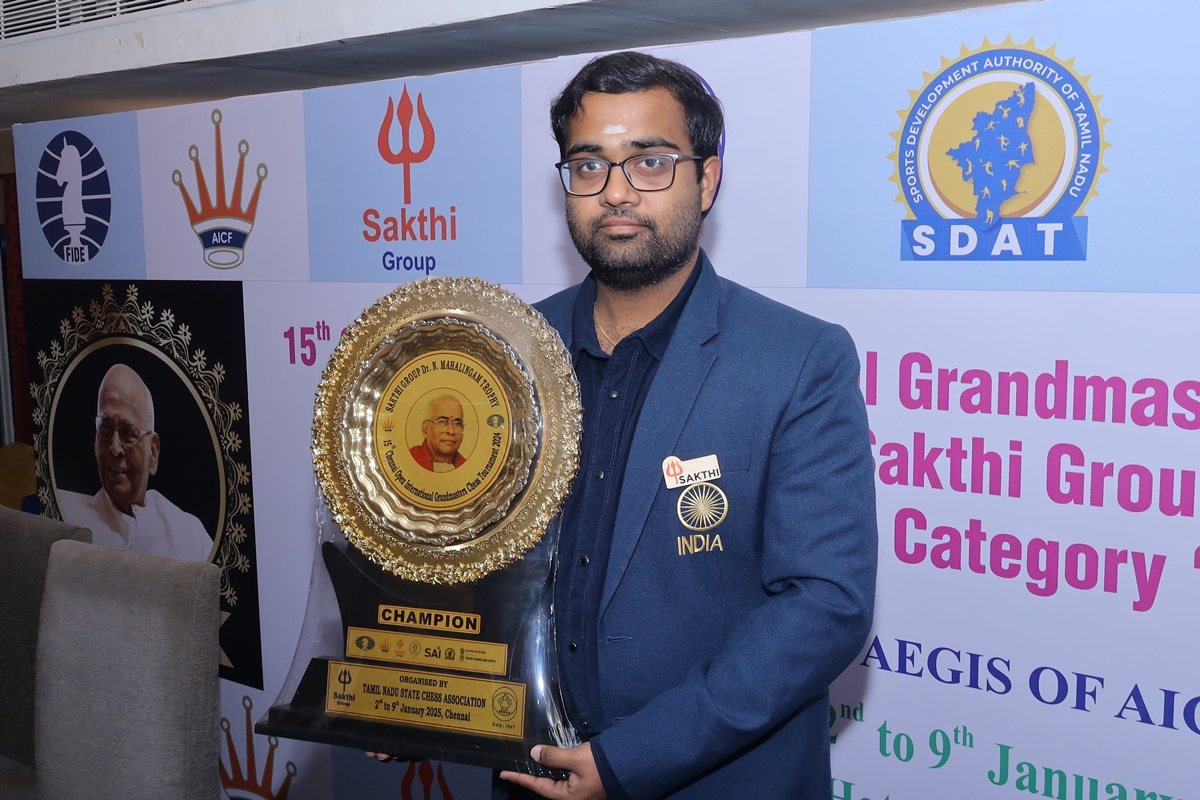 1/15/2025 – 176 players took part in the International Grandmaster Open in Chennai in the first week of the New Year. Indian GM Inyan PA led the field and went on to win the tournament, beating Deepan, who had been leading the field, in the final round. | Photos: IA R Anantharam