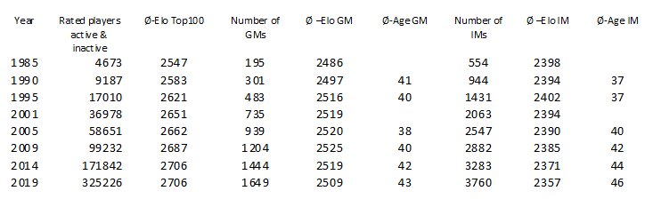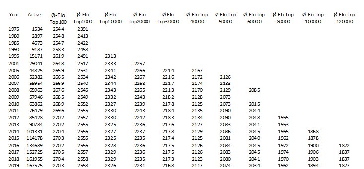 Table 1: Average values of players with an active Elo rating (January 2019)