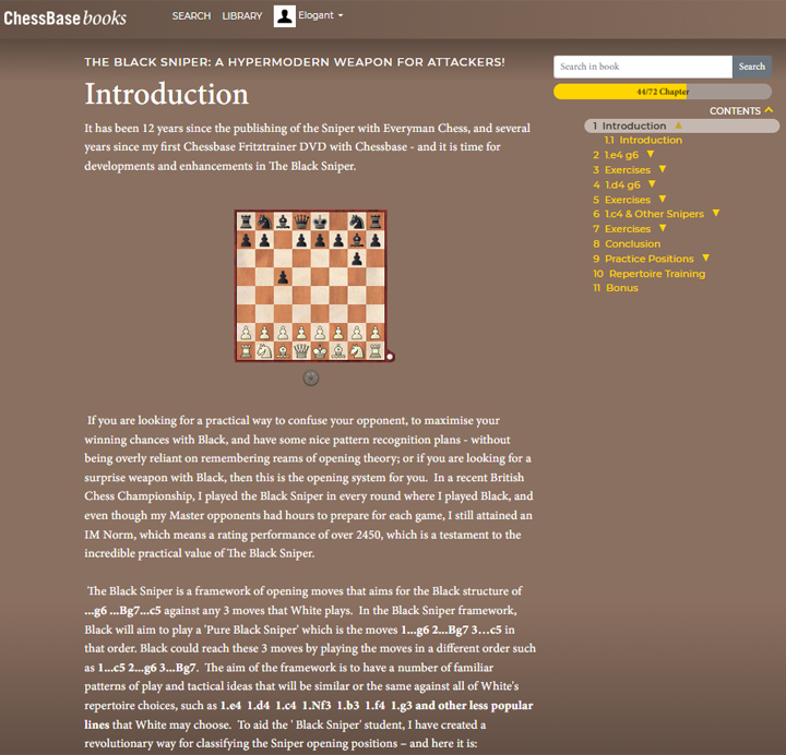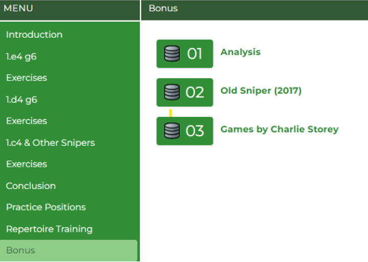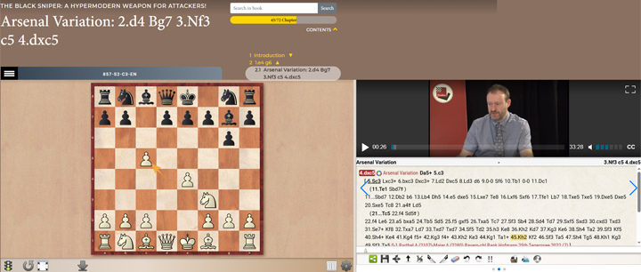 The “Black Sniper” is back – sharper and deadlier than ever! This dynamic system (1...g6, 2...Bg7, 3...c5 against 1.e4, 1.d4 and 1.c4) creates unpredictable, high-pressure positions that make it difficult for opponents to adapt," reads the introduction to this course. In fact, the new edition of the course is a wonderful addition to the first publication from 2017. It is by no means a re-evaluation of the variations from eight years ago, but rather a development of the system in times of ever-stronger chess engines.