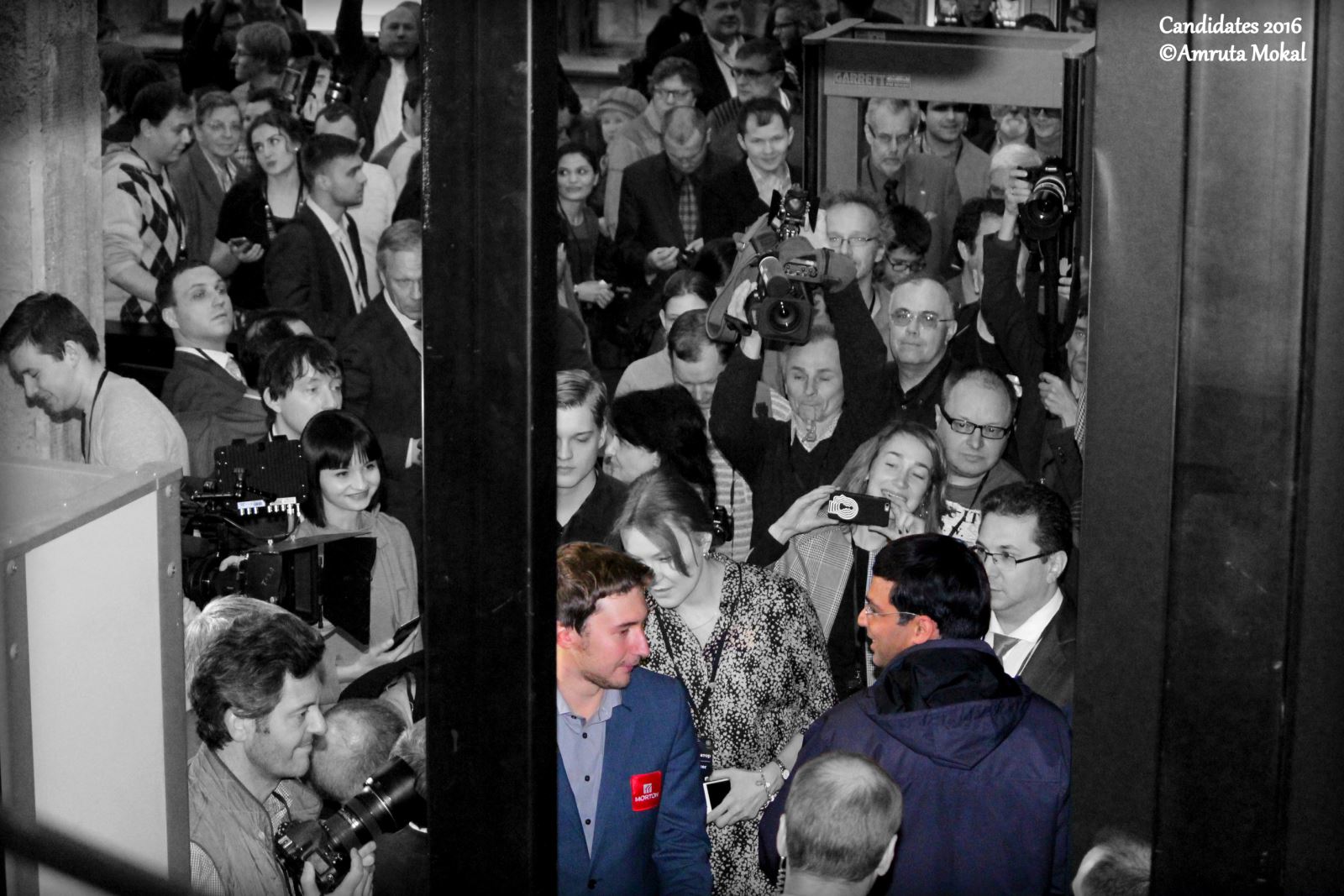 Everyone was looking forward to that one duel – the battle which would decide who the Challenger of Magnus Carlsen would be. Sergey Karjakin and Fabiano Caruana were tied on the same points with 7.5/13. And the best part about the last round was that they were paired against each other. Amruta and I made our way to the Central Telegraph Building, and reached half an hour before the start of the game. Of course, we did not want to miss even a single moment. Around 2.45 p.m. players started to enter the tournament hall. Here's a video that shows the environment of the playing venue ten minutes before the start of the game.